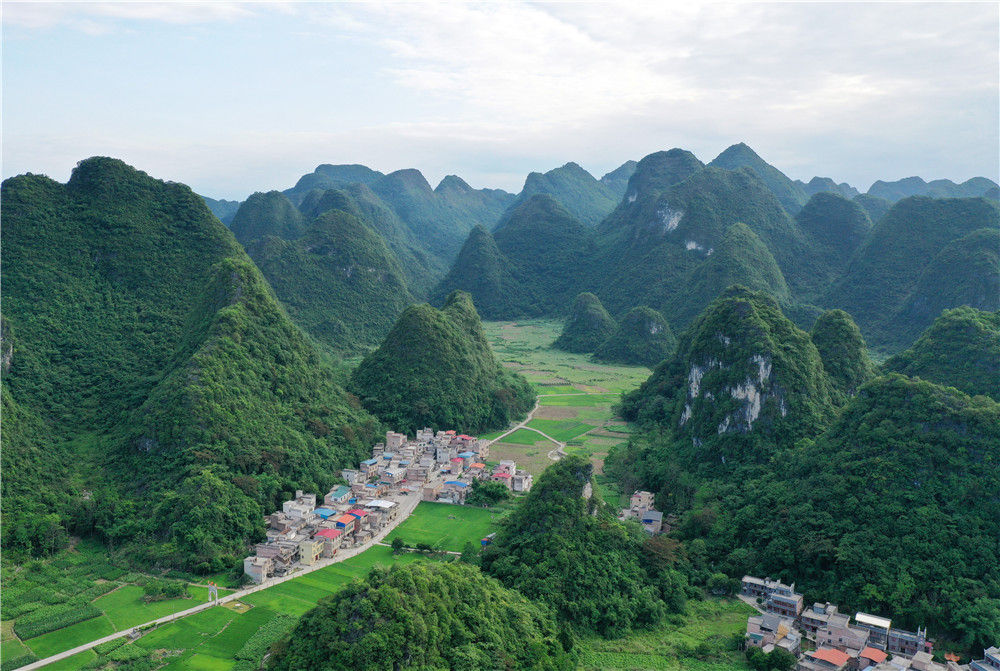 這是廣西環(huán)江毛南族自治縣下南鄉(xiāng)鄉(xiāng)村風(fēng)貌(5月22日攝,無(wú)人機(jī)照片)。新華社記者 陸波岸 攝