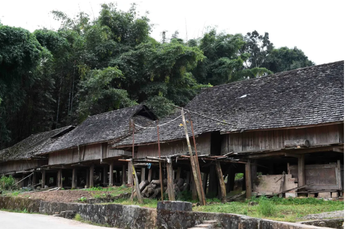 云南省西盟佤族自治縣勐梭鎮(zhèn)班母村老寨(上圖)和新房(下圖)杜涓涓 攝