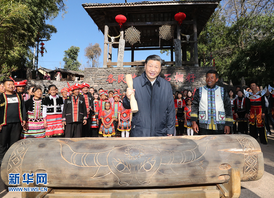 今年1月19日,正在云南考察的習(xí)近平來(lái)到騰沖市清水鄉(xiāng)三家村中寨司莫拉佤族村。司莫拉,佤語(yǔ)意為“幸福的地方”。習(xí)近平說(shuō),在大家努力下,你們這里已經(jīng)實(shí)現(xiàn)脫貧并正向新的發(fā)展目標(biāo)努力邁進(jìn),可喜可賀。全面建成小康社會(huì)之后要全面推進(jìn)鄉(xiāng)村振興,讓幸福的佤族村更加幸福!按照當(dāng)?shù)亓?xí)俗,習(xí)近平拿起鼓棒,敲響三聲木鼓,祝福風(fēng)調(diào)雨順、國(guó)泰民安、四海升平,并向鄉(xiāng)親們致以新春祝福。
