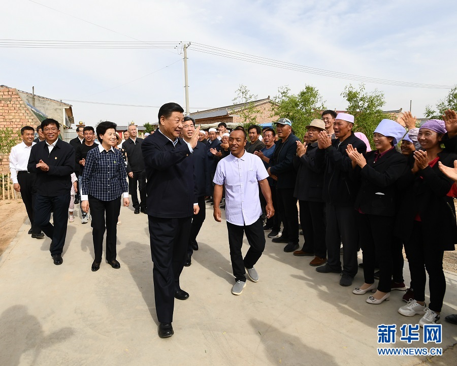 6月8日至10日,中共中央總書記、國家主席、中央軍委主席習(xí)近平在寧夏考察。這是6月8日下午,習(xí)近平在吳忠市紅寺堡區(qū)紅寺堡鎮(zhèn)弘德村看望移民搬遷群眾,向村民們揮手致意。 新華社記者 謝環(huán)馳 攝