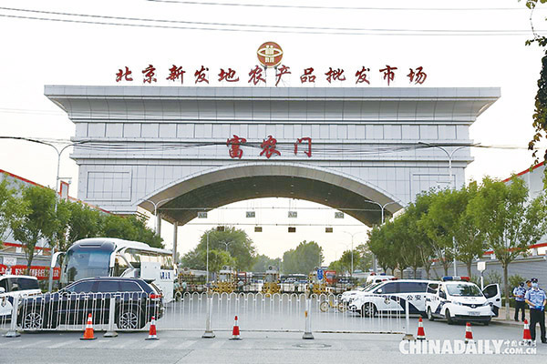 6月12日0時至24時,北京市豐臺區(qū)共報告5例新冠肺炎確診病例。病例行動軌跡涉及新發(fā)地批發(fā)市場部分商戶,目前新發(fā)地批發(fā)市場及周邊小區(qū)已采取封閉管理措施。上圖為已采取封閉管理措施的新發(fā)地批發(fā)市場外景。武曉慧 攝
