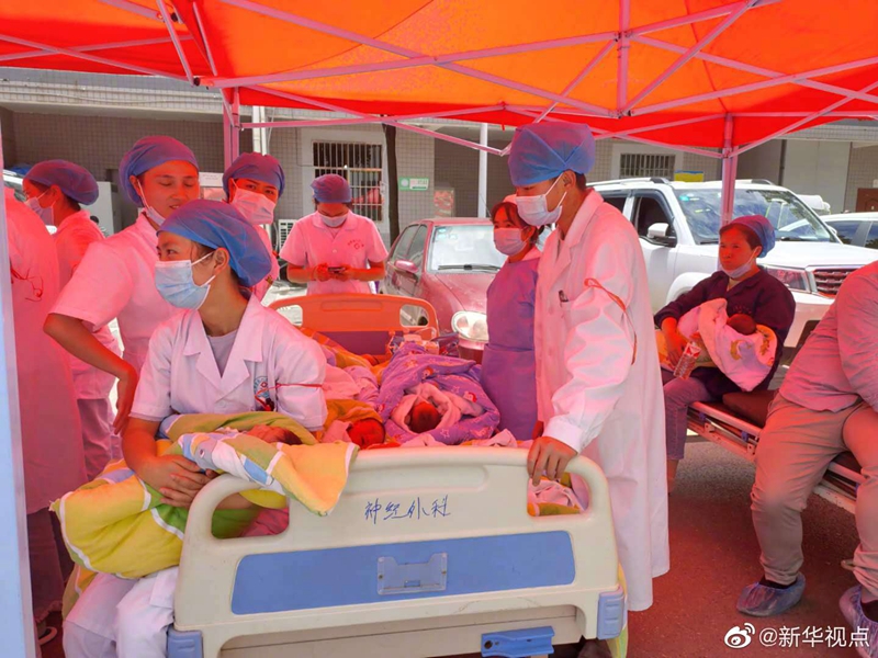7月2日,貴州省畢節(jié)市赫章縣發(fā)生4.5級地震,震源深度13千米。地震襲來,當(dāng)不少人都往外疏散時,正在開展業(yè)務(wù)學(xué)習(xí)的赫章縣人民醫(yī)院新生兒科醫(yī)生們第一時間“逆行”病房,緊隨而來的還有實習(xí)生、急診科護(hù)士等。他們每人負(fù)責(zé)一個寶寶,抱著往外疏散,確保當(dāng)時在病房的26個新生寶寶平安撤離到安全地帶。致敬白衣天使?。ㄓ浾咄跣旅鳌Ⅰ橈w 圖片來源赫章縣人民醫(yī)院)