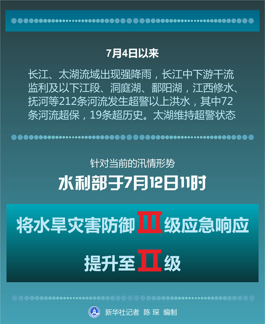 水利部有關(guān)負(fù)責(zé)人說,應(yīng)急響應(yīng)級(jí)別提升后,水利部將進(jìn)一步加密水情監(jiān)測(cè)和滾動(dòng)預(yù)報(bào)頻次,每天不定期進(jìn)行會(huì)商研判,加大對(duì)長(zhǎng)江、太湖流域的防汛指導(dǎo)力度。