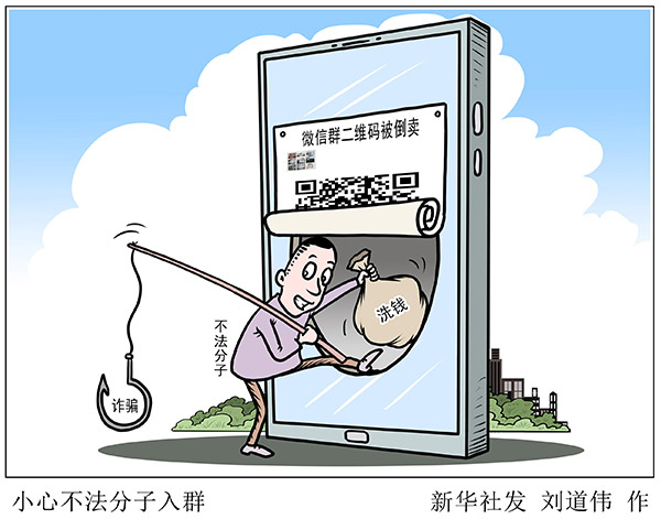 “新華視點”記者調(diào)查發(fā)現(xiàn),微信群的二維碼在網(wǎng)絡(luò)上被倒賣,一些不法分子借此實施詐騙或洗錢。