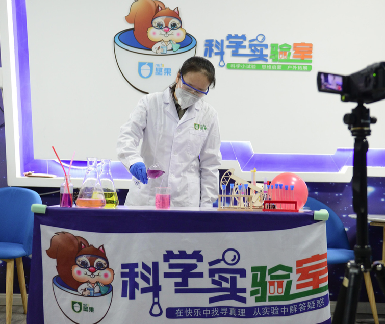 2月16日,呼和浩特市玉泉區(qū)青少年宮的老師通過(guò)線上課堂做測(cè)試酸堿度小實(shí)驗(yàn)