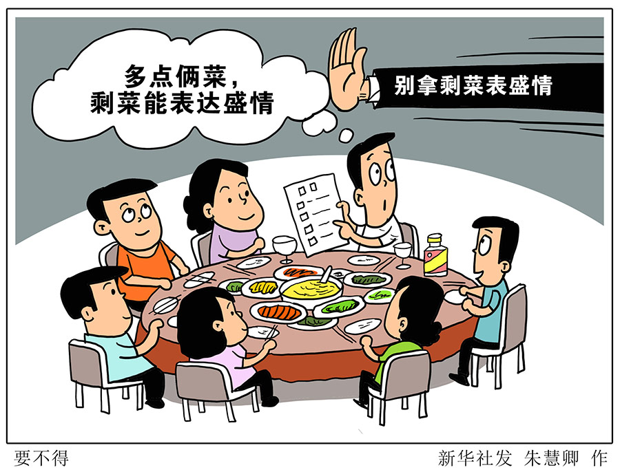 習(xí)近平總書(shū)記近日作出重要指示,強(qiáng)調(diào)堅(jiān)決制止餐飲浪費(fèi)行為切實(shí)培養(yǎng)節(jié)約習(xí)慣,在全社會(huì)營(yíng)造浪費(fèi)可恥節(jié)約為榮的氛圍。這一重要指示發(fā)人深省、飽含啟示。在日常生活中,主客散席時(shí)留下半桌剩菜的場(chǎng)面并不少見(jiàn),寧可點(diǎn)多、絕不能少,這種以剩菜表達(dá)盛情的心態(tài)和行為要不得。