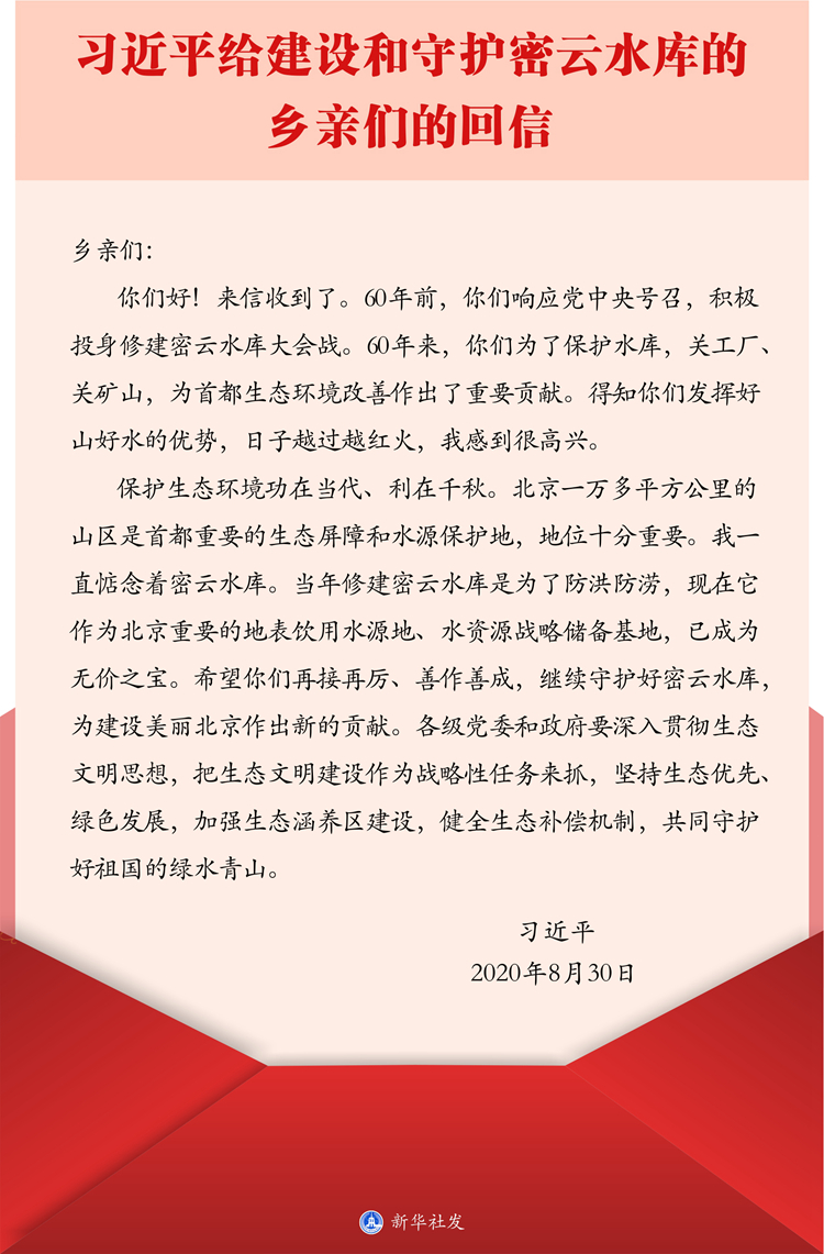 習(xí)近平給建設(shè)和守護(hù)密云水庫的鄉(xiāng)親們的回信