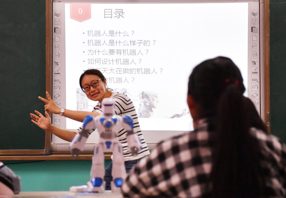 ↑新疆塔克拉瑪干沙漠腹地的小學(xué)生上科普課