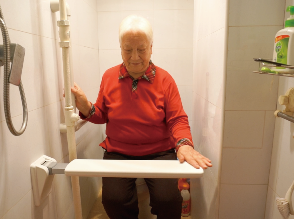 在蔡琴英的家里,本刊記者聽(tīng)她一一講解、展示了適老化改造的成果:床邊的應(yīng)急呼叫報(bào)警裝置、走廊墻角的紅外感應(yīng)夜燈、浴室里的防滑坐浴椅和防滑墊……