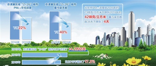 與此同時,2019年京津冀區(qū)域“2+26”城市生產(chǎn)總值達到14.2萬億元,比2016年增長了17.2%。