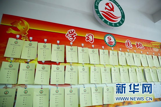 玉樹州基層干部學(xué)院學(xué)習(xí)園地展示著學(xué)員們的學(xué)習(xí)心得。新華網(wǎng)記者焦鵬攝