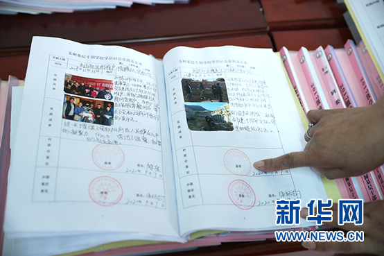 玉樹州基層干部學(xué)院李玉蘭院長介紹學(xué)員考核手冊。新華網(wǎng)記者焦鵬攝