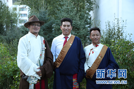 玉樹州基層干部學(xué)院一期學(xué)員江加多杰(左一)和同學(xué)在一起。新華網(wǎng)記者焦鵬攝