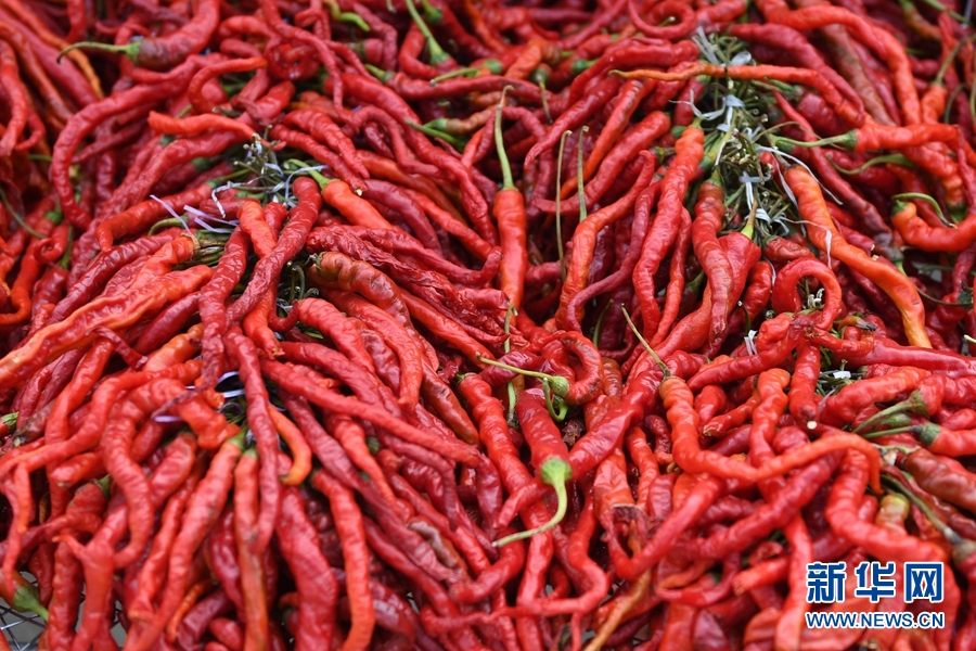 2020年慶祝中國農(nóng)民豐收節(jié)暨循化縣消費扶貧“辣椒節(jié)”現(xiàn)場展示銷售的線辣椒。(新華網(wǎng)潘彬彬攝)