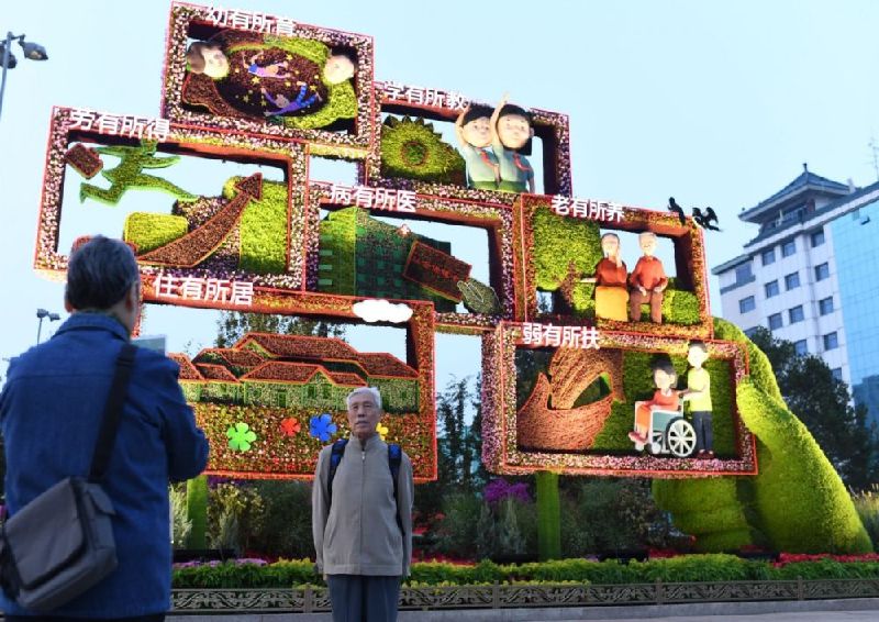 ↑《高質(zhì)量發(fā)展》花壇(東單路口東南角)