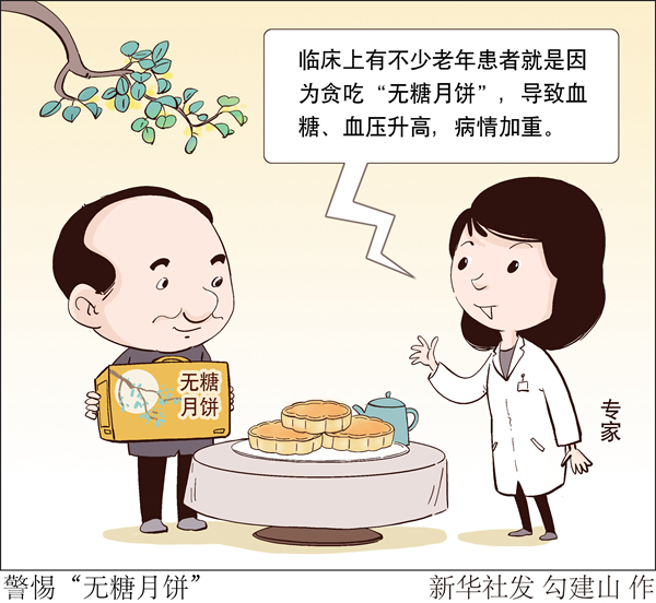 另外,市場上所謂的“無糖月餅”,是指餡料中不含蔗糖的月餅,但月餅本身含有大量的淀粉,可分解成葡萄糖。臨床上有不少老年患者就是因?yàn)樨澇浴盁o糖月餅”,導(dǎo)致血糖、血壓升高,病情加重。