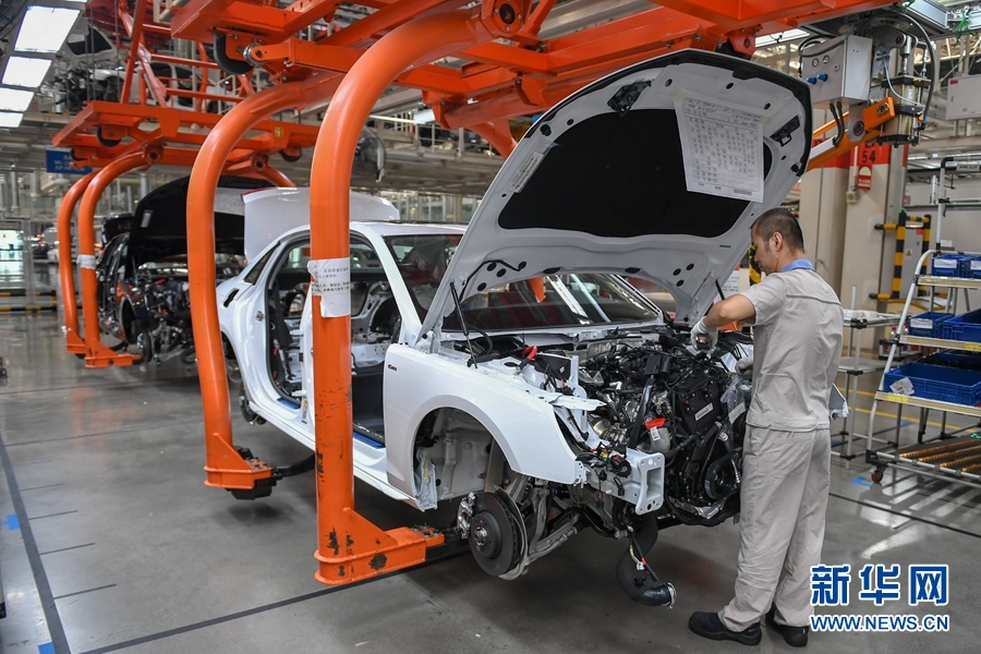 工人在一汽-大眾長春基地總裝車間裝配車輛(9月1日攝)。9月15日,國家統(tǒng)計局數據顯示,8月份,全國規(guī)模以上工業(yè)增加值同比增長5.6%,增速比7月份加快0.8個百分點。1至8月份,全國規(guī)模以上工業(yè)增加值同比增長0.4%,增速實現由負轉正。 新華社記者 張楠 攝