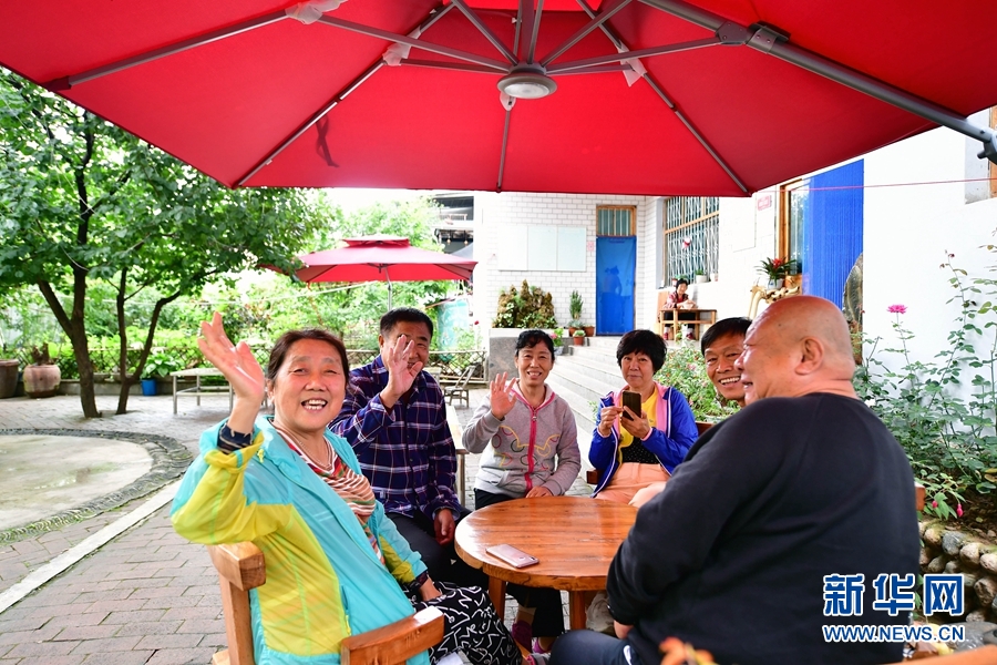在河南省洛陽市欒川縣叫河鎮(zhèn),游客在民宿的小院內休憩(8月22日攝)。 新華社記者 馮大鵬 攝