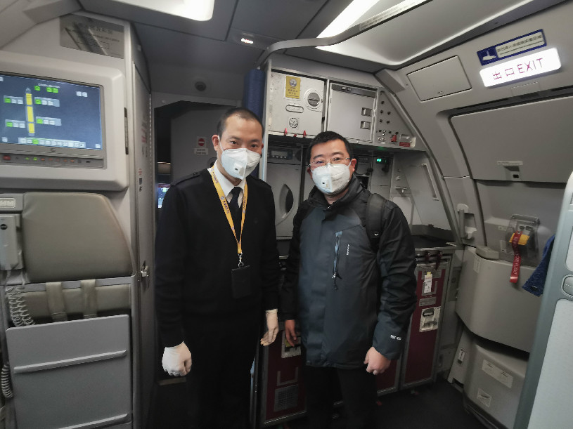 四川廣播電視臺 張藝2020年2月2日采訪“英雄機長“劉傳建并合影,當天英雄機長送戰(zhàn)疫英雄前往武漢