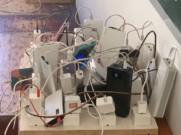 每間教室的講臺(tái)旁邊都放著一排插線板,上面插滿了充電寶。據(jù)學(xué)生介紹,學(xué)校封禁了宿舍內(nèi)的插電孔,他們只能將充電寶在教室充滿電后帶回宿舍用。“有時(shí)候教室里充電的地方滿了,要么排隊(duì),要么去超市花錢充?!庇捎谒奚釠]插電孔、沒網(wǎng),這里的大學(xué)生幾乎沒人用電腦。小許說,學(xué)校說宿舍不能充電是為了防火安全,但是如此管理未免太過“簡(jiǎn)單粗暴”。