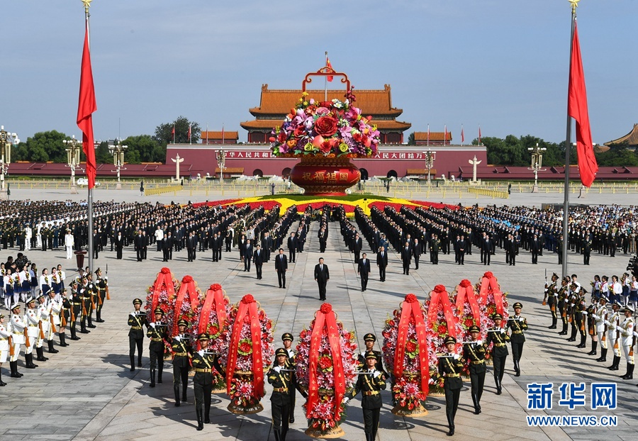 9月30日上午,黨和國家領(lǐng)導(dǎo)人習(xí)近平、李克強(qiáng)、栗戰(zhàn)書、汪洋、王滬寧、趙樂際、韓正、王岐山等來到北京天安門廣場(chǎng),出席烈士紀(jì)念日向人民英雄敬獻(xiàn)花籃儀式。 新華社記者 謝環(huán)馳 攝