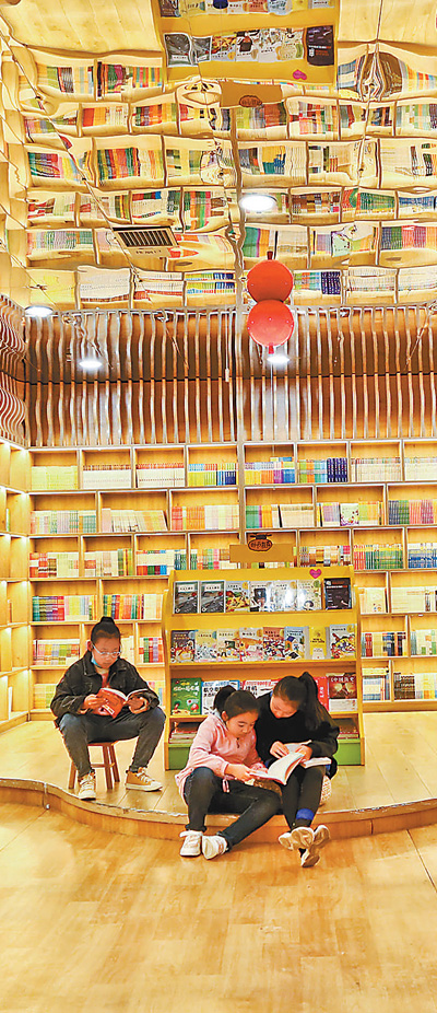 10月5日,小朋友在甘肅張掖錦華書城里讀書。王 將攝(人民視覺)