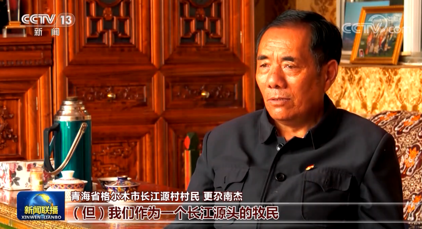 青海省格爾木市長江源村村民 更尕南杰:搬下來的時候,我轉身看了三次,舍不得,但我們作為一個長江源頭的牧民,我們也給國家作一點貢獻。