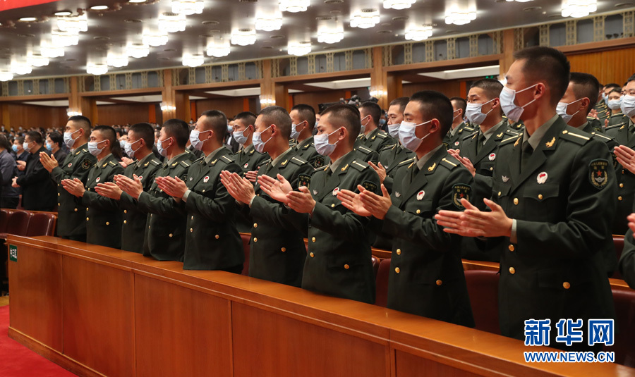 ??? 10月23日,紀念中國人民志愿軍抗美援朝出國作戰(zhàn)70周年大會在北京人民大會堂隆重舉行。圖為志愿軍老戰(zhàn)士、老同志入場時,大會現場的解放軍和武警部隊官兵代表起立鼓掌。(新華網 翟子赫 攝)