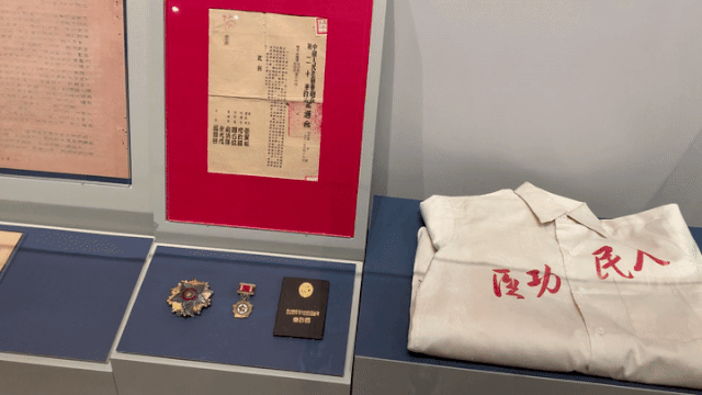 “紀(jì)念中國人民志愿軍抗美援朝出國作戰(zhàn)70周年主題展覽”中,展出的楊根思遺物。新華每日電訊記者劉小草攝