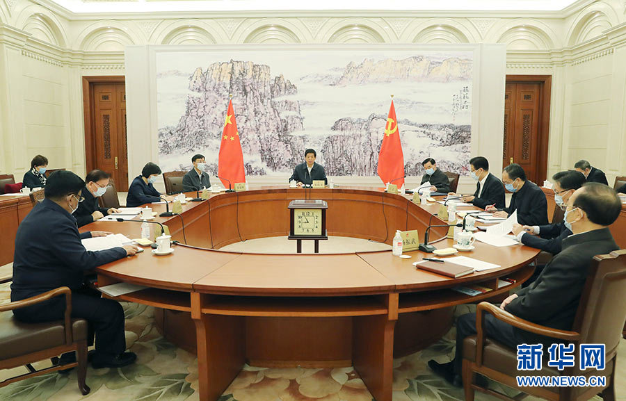 10月30日,中共全國人大常委會黨組在北京舉行會議,傳達(dá)學(xué)習(xí)習(xí)近平總書記在黨的十九屆五中全會上的重要講話和全會精神。中共中央政治局常委、全國人大常委會委員長、黨組書記栗戰(zhàn)書主持會議并講話。 新華社記者 姚大偉 攝