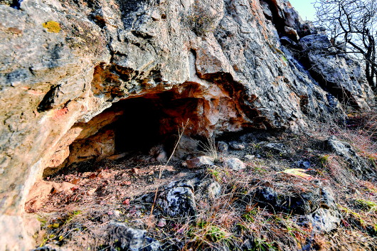 這次3個老鄉(xiāng)帶路,換路而行。路程明顯縮短,但卻十分陡峭。有的石階僅容一只腳,兩只手也只能扒著峭壁,而身后就是懸崖。攀爬一個多小時后,一個山洞映入眼簾。