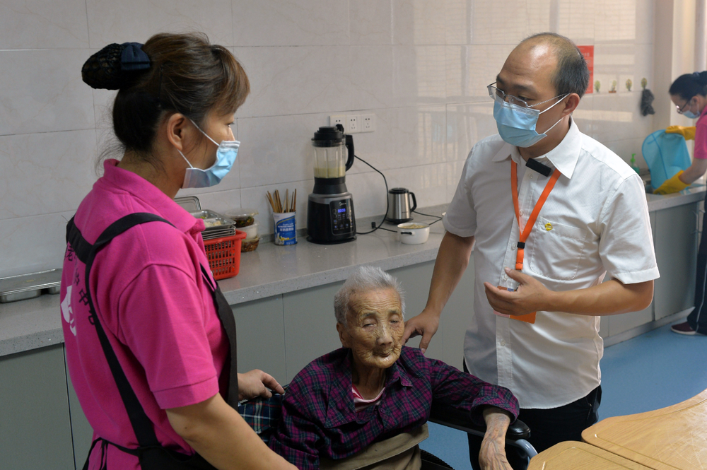 在湖南長(zhǎng)沙一家養(yǎng)老機(jī)構(gòu),老年人能力評(píng)估師王帝權(quán)(右)在為一名老人做生活自理能力評(píng)估 新華社記者 戚曉毅 攝