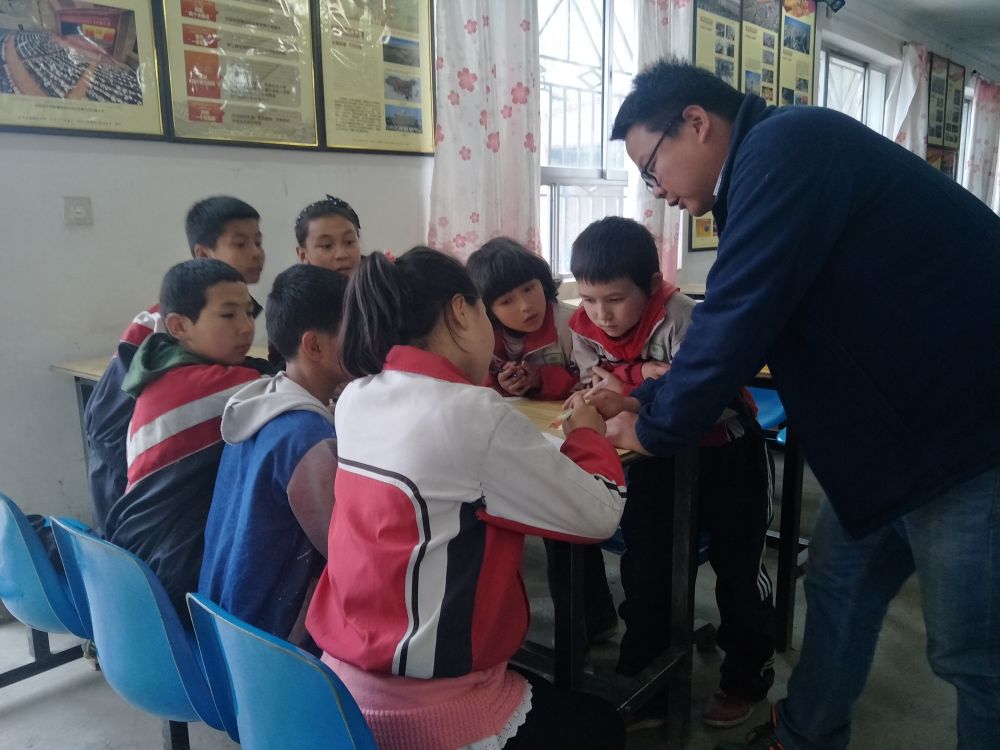 2017年4月,呼延瑋輔導(dǎo)蘭干村的孩子們學(xué)習(xí)語文。(采訪對象供圖)