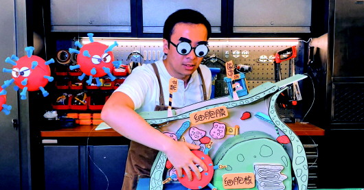 在一個不足100平方米的工作室內,寧原構建了屬于自己的“科學模型王國”。狡猾的新冠病毒、憨態(tài)可掬的企鵝、呆萌的北極熊、可怕的蜘蛛,“王牌飛行員”——蜻蜓……一個個用各種材料制作出的卡通模型,從寧原的手中誕生,再以生動活潑的方式在視頻中一一出場,幫助人們理解身邊的趣味科普知識。 “科普達人”如何煉成?