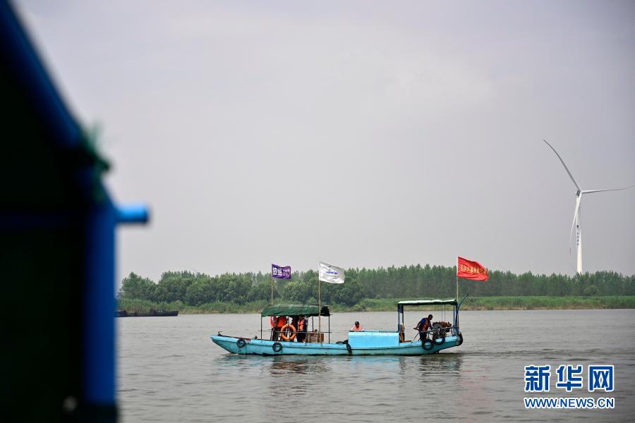 在江西省湖口縣,江豚協(xié)助巡護(hù)隊(duì)的隊(duì)員在鄱陽湖水域巡查(6月8日攝)。新華社記者 彭昭之 攝