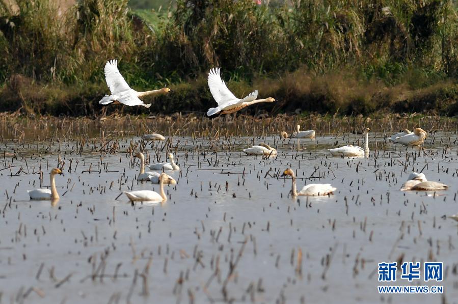 這是11月11日在湖南西洞庭湖國家級自然保護(hù)區(qū)拍攝的候鳥。新華社記者 陳思汗 攝