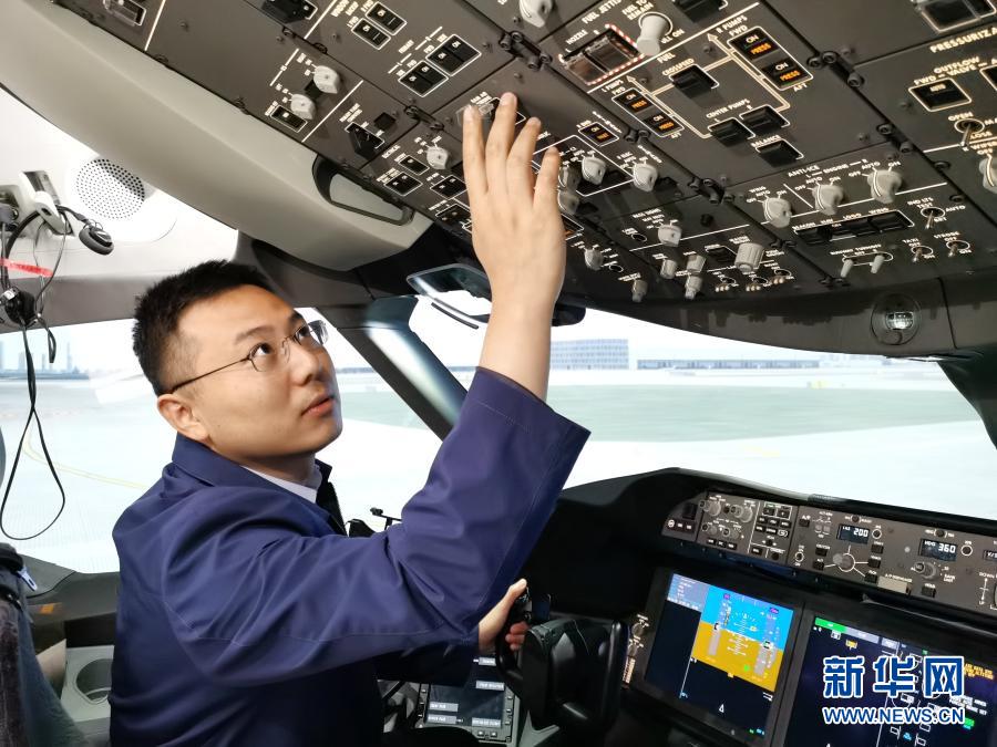 在蓉飛行模擬機(jī)運行團(tuán)隊負(fù)責(zé)人姜毓琦在工作中(10月16日攝)。新華社發(fā)(中國商飛四川分公司供圖)