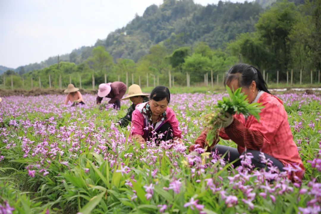 贛州市石城縣大由鄉(xiāng)貧困戶(hù)在下伊村中藥材白芪種植基地勞作 黃媛媛 攝