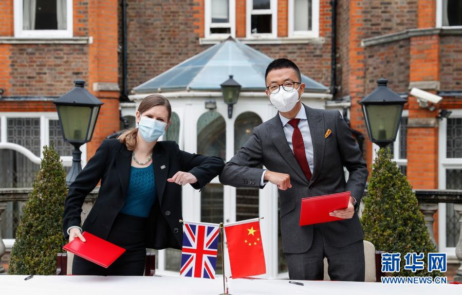 10月16日,在英國倫敦,代表中國國家文物局的中國駐英國大使館文化處一秘于果(右)和代表英國大都會警察局的探員蘇菲·海斯簽署文物接收確認(rèn)書。新華社記者 韓巖 攝
