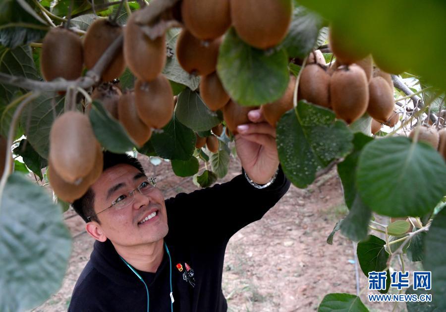 田昕在牛橫嶺村果木種植基地查看獼猴桃生長(zhǎng)情況(10月12日攝)。新華社記者 李嘉南 攝