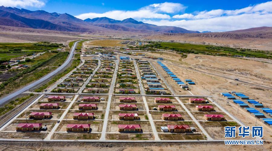 位于帕米爾高原上的新疆喀什地區(qū)塔什庫爾干塔吉克自治縣一處村莊新貌(6月10日攝,無人機照片)。新華社記者 胡虎虎 攝