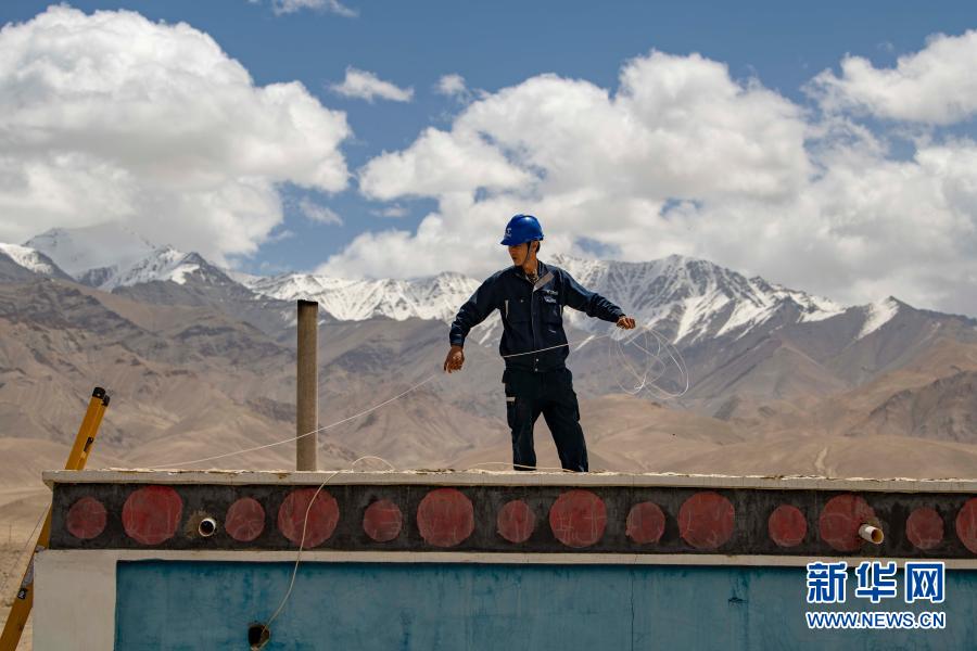 在新疆喀什地區(qū)塔什庫爾干塔吉克自治縣,工作人員為當(dāng)?shù)剞r(nóng)戶鋪設(shè)入戶光纖(6月10日攝)。目前,喀什地區(qū)已實現(xiàn)光纖入戶全覆蓋。新華社記者 胡虎虎 攝