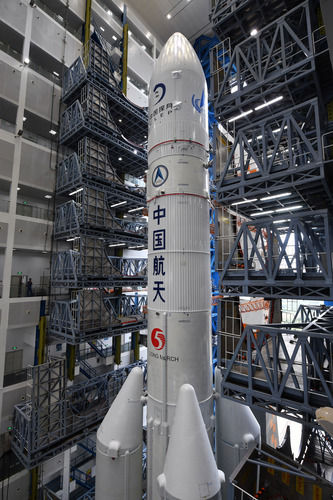這是11月17日在中國文昌航天發(fā)射場(chǎng)拍攝的長(zhǎng)征五號(hào)遙五運(yùn)載火箭。新華社記者 郭程 攝