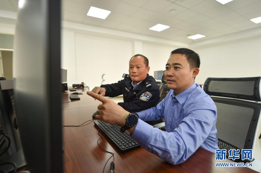 張忻鑫(右)在現(xiàn)場(chǎng)進(jìn)行痕跡采集(2016年2月17日攝)。新華社發(fā)