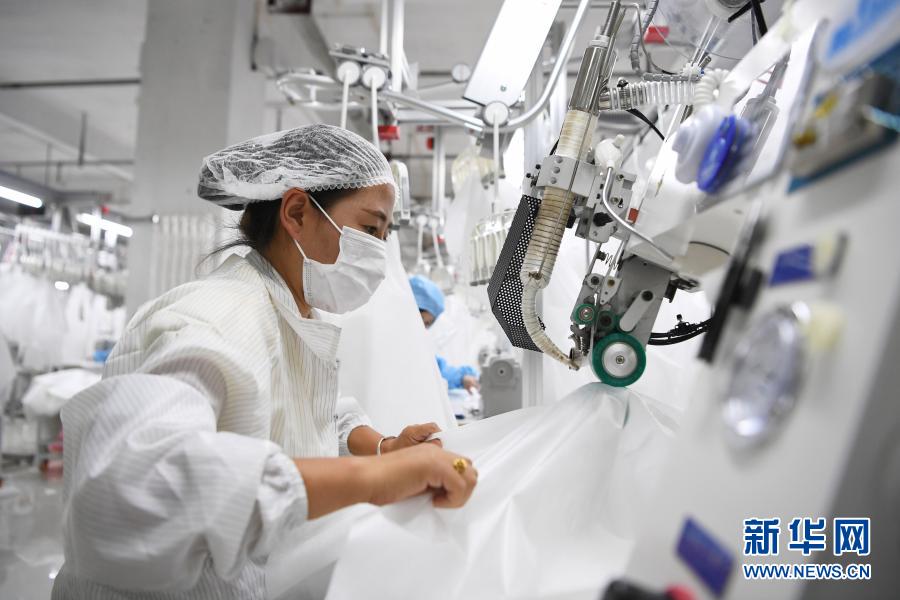 在臨夏回族自治州積石山縣,依托東西部扶貧協(xié)作平臺引進的服裝加工企業(yè)甘肅拓奇扶貧車間的員工在服裝加工生產(chǎn)線上作業(yè)(8月9日攝)。新華社記者 陳斌 攝