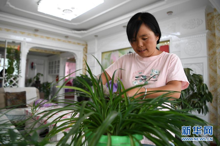 在臨夏回族自治州臨夏縣土橋鎮(zhèn)易地扶貧搬遷安置點,搬遷戶楊喜梅在家中收拾家務(8月11日攝)。新華社記者 陳斌 攝