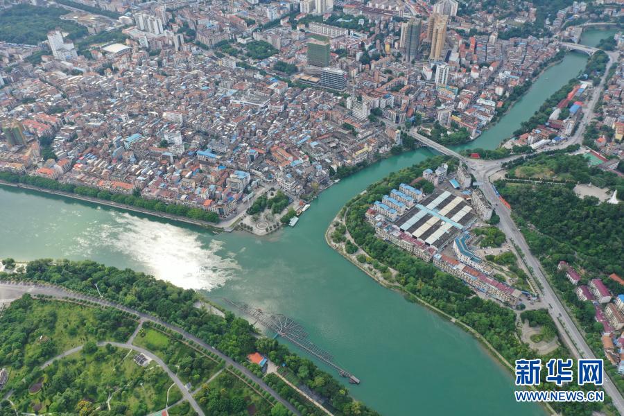 廣西百色市城區(qū)新貌(2019年8月29日攝,無人機(jī)照片)。新華社記者 曹祎銘 攝
