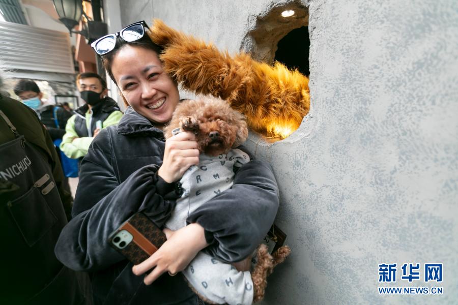 12月4日,一名顧客與伸出洞口的“熊爪”互動。新華社記者 王翔 攝