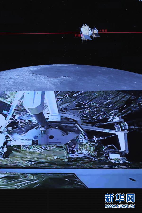 記者從國家航天局獲悉,12月6日5時(shí)42分,嫦娥五號(hào)上升器成功與軌道器返回器組合體交會(huì)對(duì)接,并于6時(shí)12分將月球樣品容器安全轉(zhuǎn)移至返回器中。這是我國航天器首次實(shí)現(xiàn)月球軌道交會(huì)對(duì)接。新華社記者 金立旺 攝