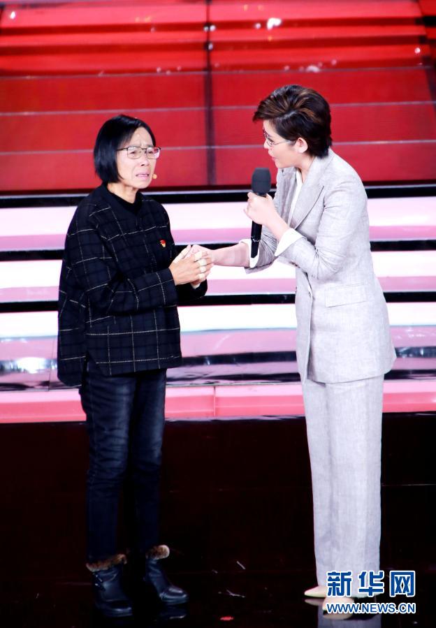 張桂梅(左)在“時(shí)代楷?!卑l(fā)布儀式上與主持人交流(12月7日攝)。新華社記者 潘旭 攝